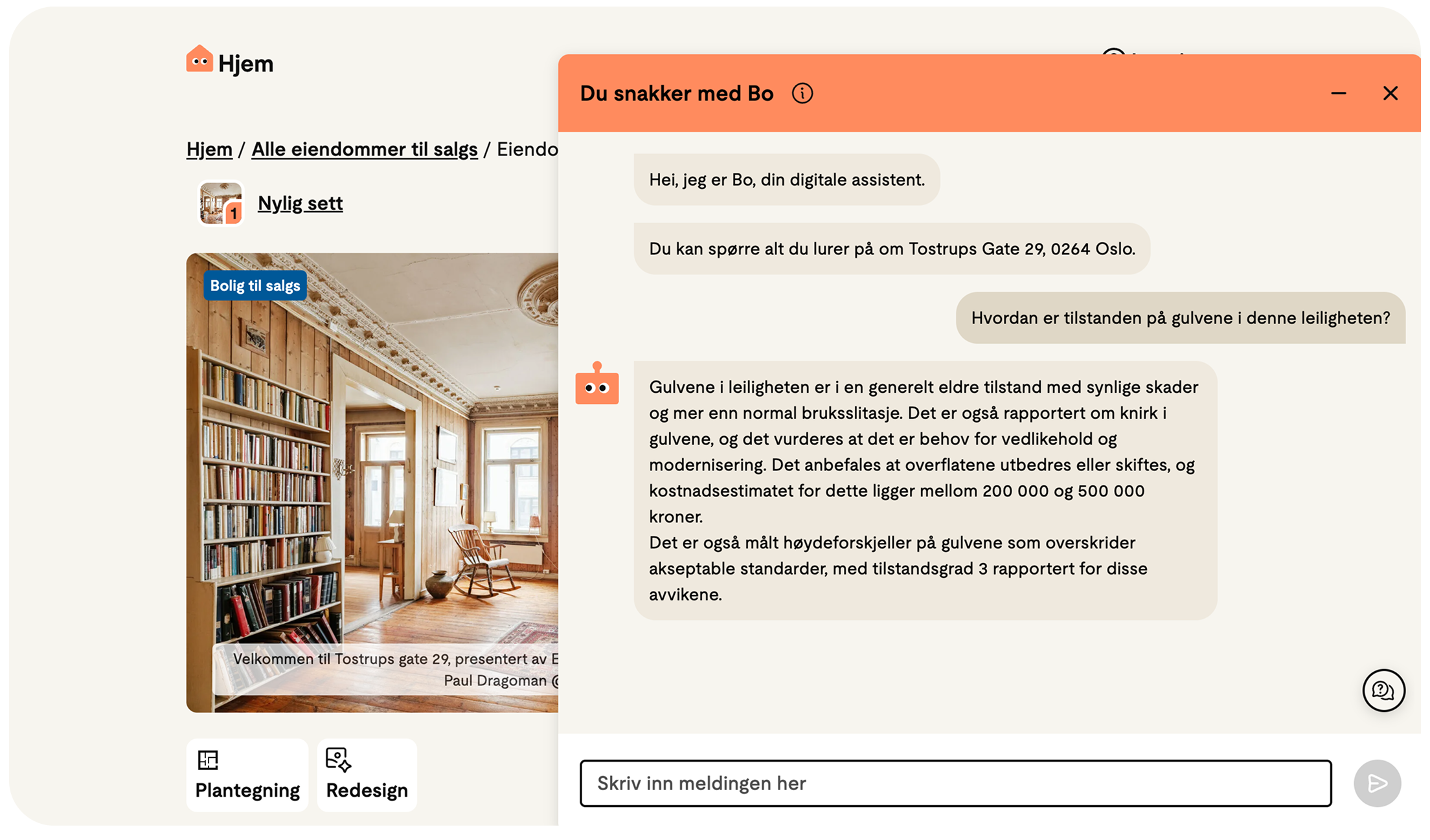 I tillegg har den digitale assistenten Spør Bo gjort det enklere å få svar på konkrete spørsmål om boligen. I stedet for å lete gjennom hele salgsoppgaven, kan kjøperne stille spørsmål direkte og få raske svar på akkurat det de lurer på.